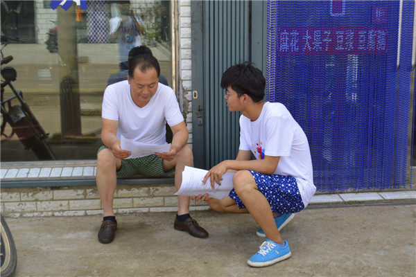 上午9时,三下乡队长周博成将三下乡小组分成两队,分别去往不同的村镇进行宣传工作。然后小组成员拿出准备好的防艾禁毒材料,挨家挨户发放材料。对于在路边乘凉的村民,彩虹服务队成员为其讲解毒品的危害等相关知识,警醒人们远离毒品、预防艾滋病。村民们纷纷对彩虹服务队的行为点赞,说队员们是在为社会做好事。