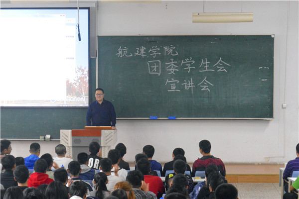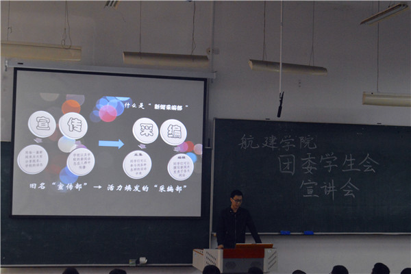 9月23日早上10时整,MKsports团学联各部门于主楼S104教室开展团学联招新宣讲会。航建学院团学联全体成员负责组织本次宣讲会,学务部副部长褚悦担任主持人,MKsports2017级新生参加本次宣讲会。