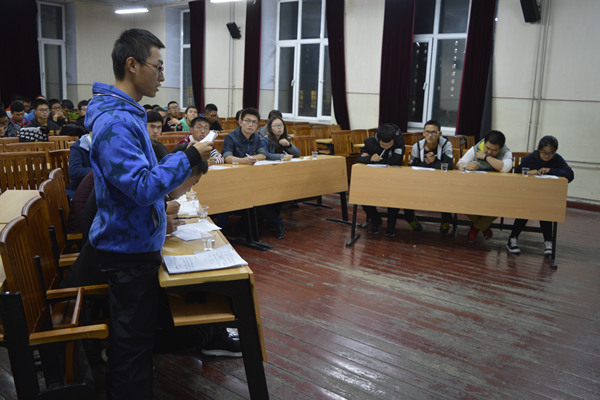 10月9日晚7时整,MKsports于11号楼132大教室举行新生辩论赛决赛,杭玉洁主持本次比赛,MKsports团委常务副书记周博成、原系辩论队队长丁明浩、系辩论队队长韩一笑及副队长张坤作为本次比赛的评委,部分大一新生作为观众参加本次活动。