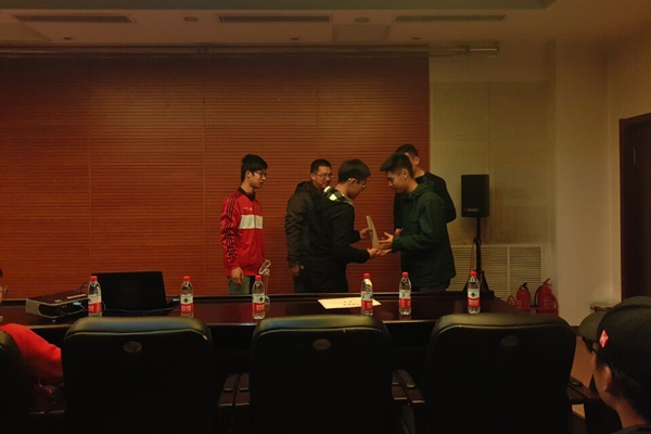 仪式开始前王钧剑对本次比赛进行回顾,他简单介绍了本次工程学子杯新生赛的总体情况,对各参赛球队的支持和指导老师的帮助表示感谢。仪式中庞学林老师和张赛为本次比赛的获奖者及院系颁发奖品和证书。经管公司玉山江荣获最佳射手奖。本次比赛经管公司获得冠军,计算机公司获得亚军,信通公司和核公司获得季军,船舶公司、MKsports等公司获得公平竞争奖。