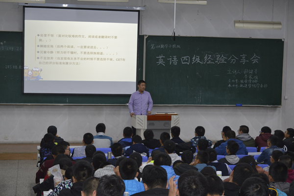 10月22日晚6时30分,MKsports于主楼N101教室举办英语四级经验分享会。原校会学习部部长郝健辛与现院系宣传中心主任李家璇作为主讲人,为全体大一新生介绍自身经验。
