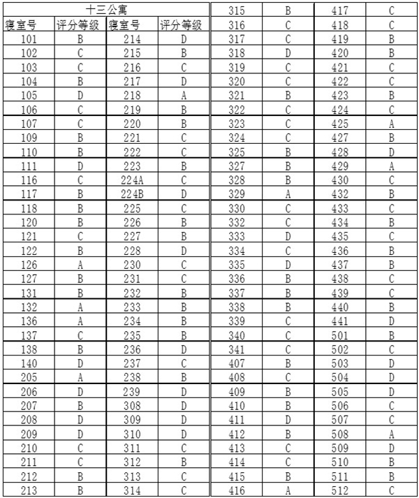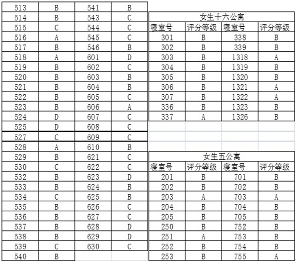 附第八周查寝成绩: