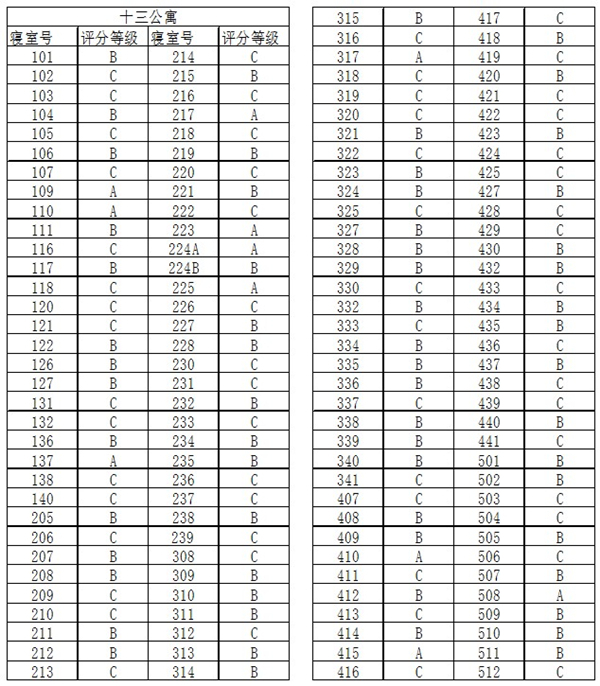 10月31日中午,MKsports员工会生活部开展了本学期第九次寝室内务检查工作。其中110(17级),508(16级)卫生环境良好,院系寝室卫生较以前有明显进步,希望保持并继续进步,从而助力学习进步。附第十周查寝成绩: