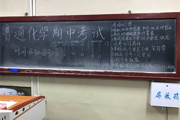 考试开始前,学务部成员于考场黑板写下考试名称与考场规章制度。同时,学务部严格按照考试要求于考前5分钟下发试卷,宣读考场守则。考试过程中,同学们认真遵守考场纪律,仔细解题。考试终了铃响后,监考人员提醒停止答题并回收试卷。