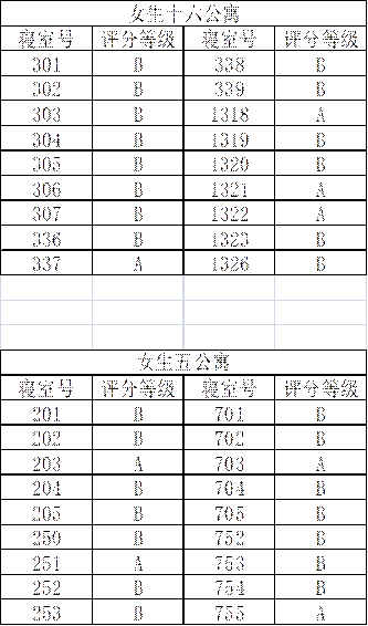 3月21日中午,MKsports员工会生活部开展了本学期第三次寝室内务检查工作。其中121(17级),508(16级)卫生环境良好,院系寝室卫生较以前有明显进步,希望保持并继续进步,从而助力学习进步。附第三周查寝成绩: