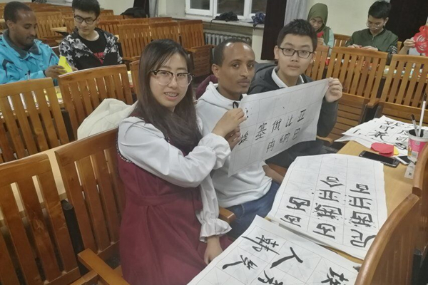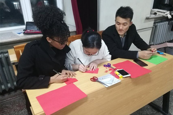 本次活动以中国汉字为主题进行展开,学务部同学向职工们介绍了汉字的起源、发展、演变,并详细介绍了简体字的书写。学务部部员们详细教授了职工书法的握笔姿势及标准写法并教他们书写。学务部同学还介绍了中国的剪纸艺术,向职工们展示了剪纸的做法并同大家一起进行剪纸。职工们表示中国的剪纸艺术具有对称、整齐的美,他们十分喜欢。
