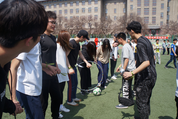 活动首先,由李震老师宣布运动会开始,比赛形式采用自由组队,分为红、粉、蓝、绿四支队伍,共包含拔河、气球爆破、抢被子、摸石过河、呼啦圈过山车、眩晕射门等七个项目的比拼。中外员工团结协作,激情碰撞,现场充满了愉悦欢快的气氛。活动最后,李震老师为获奖队伍颁发获奖证书和工程大学独有的特色奖品——杏花饼。