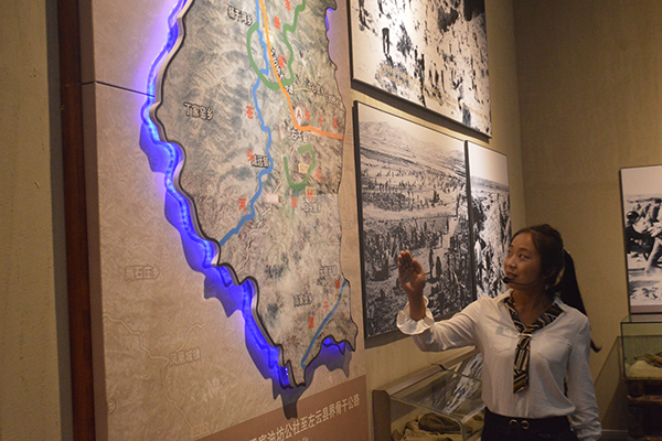 在这里,我们见到了“右玉精神”的发展历程。刚一进馆,我们就看到了一片大型浮雕墙,墙上最中央刻着习近平总书记关于“右玉精神”的重要批示:右玉精神体现的是全心全意为人民服务,是迎难而上、艰苦奋斗,是久久为功、利在长远。浮雕墙上还刻出了右玉人民植树造林的身影。继续深入,我们又见到了很多珍贵的文献、图片、蜡像以及各种奖项。这里的展览共分为六个部分,分别为:“十山九秃头、十年九不收”,“右玉要想富、就得风沙住”,“镢头加窝头、觉悟加义务”,“适地选树科学栽、山川遍地靓起来”,“功成不必在我任、一张蓝图绘到底”,“艰苦奋斗结硕果、美丽右玉竞风流”。
