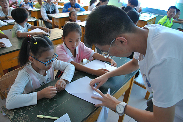 8月18日下午一时四十分,队员们来到中心公司,带领孩子们进行航模制作,在队员们的指导与帮助下,孩子们动手对航模零件进行了组装,下午五点左右,孩子们的四架航模都组装完成。经过简单的调试后,蒋春晓试飞了由孩子们亲手制作的航模。最后孩子们与彩虹服务队队员进行了合影,并向队员们表达了他们对蓝天的喜爱与向往。