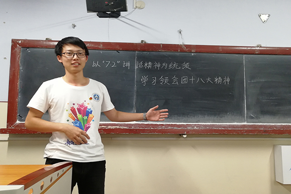 本次团活由团支书李星宇主持进行,李星宇首先就本次活动的基本内容进行简单介绍,并强调全员参与其中的重要性。活动中,他组织同学们共同观看了有关团十八大的相关视频,加深了同学们对7·2讲话精神的理解。通过小组讨论,同学们针对7·2讲话精神提出了自己的观点与疑惑。活动最后,李星宇带领团支部成员重温了入团宣誓,并对本次团活进行总结,并对同学们的疑问认真分析,仔细解答,切实地解决了大家的疑惑。