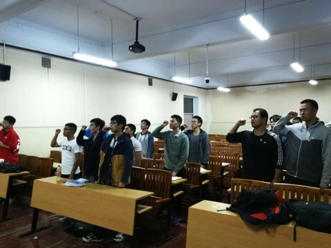 “我们是五月的花海...”随着团歌的前奏响起,17242与17203全体团员一起跟着伴奏唱着团歌,重温入团仪式,共同宣誓入团,团歌结束后,17242团支书杨铭讲解了习近平同志在同团中央新一届领导班子讲话的内容,并组织大家对该谈话内容的学习,并与同学们进行了探讨和互动。届时,还通过视频与幻灯片帮同学们加深理解,并学习了新的团章。