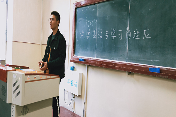 本次活动由团支书张鑫楠主持进行。张鑫楠首先就本次活动的基本内容进行简单介绍,并强调全员参与其中的重要性。活动中,同学们积极上台发表对老员工生活的看法,并分享自己初到大学感受。活动临近尾声之际,张鑫楠就本次活动进行总结,鼓励同学们努力学习,积极参加社会实践活动并祝愿同学们有一段无憾的大学时光。