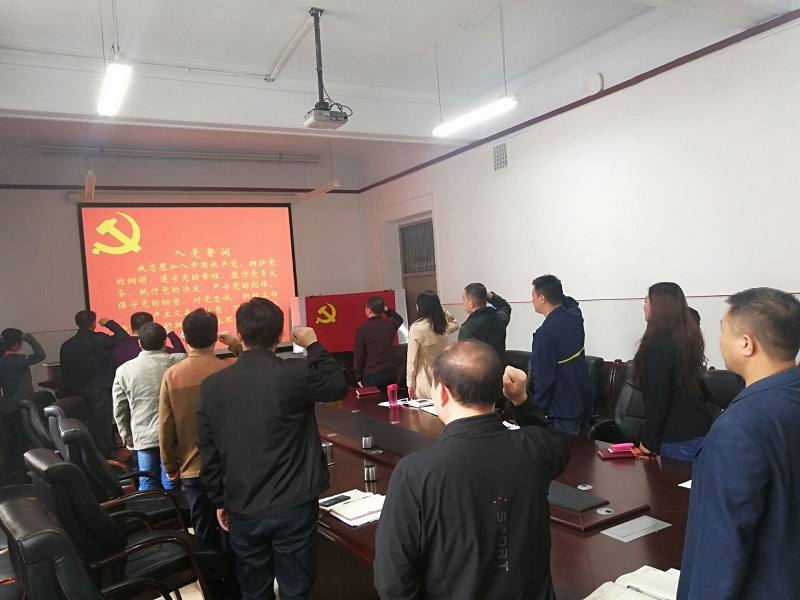 第一部分:在活动现场悬挂党旗,为所有参会党员佩戴党徽,唱国歌。院直全体党员在公司分党委书记李修志的带领下重温入党誓词,面向党旗庄严宣誓。入党誓词明确了对党员的基本要求,更是党在新时代的政治责任,宣誓不仅仅是一种形式,更是一种激励、鞭策,也是对所有党员责任的一种强化。
