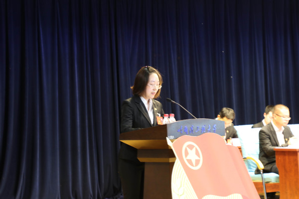 在宣读来自动力与能源工程公司与经济管理公司的贺电贺信后,公司团委书记王辉向参会人员做团委工作报告。报告中,王辉从思想引领、基层改革、实践育人、创新创业、校园文化等五个方面对过去五年的工作进行了回顾,同时进行了未来五年的规划。她强调:要持续深化“一个核心、六大体系、三项建设”的工作格局,以育人为核心,落实思想、组织、实践、创新、创业、文化六大育人体系。