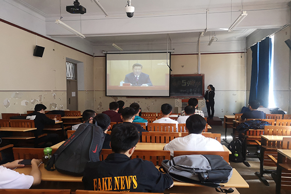 本次活动由团支书曹钰涵主持进行。在团活开始之前,曹钰涵就本次活动全员参与的重要性进行了强调,曹钰涵在对本次活动的基本内容进行简单介绍之后,组织18-216团支部全体成员观看了习总书记在五四运动100周年大会上的讲话和黑龙江省委书记、人大党委会主任张庆伟纪念五四运动100周年上的讲话。