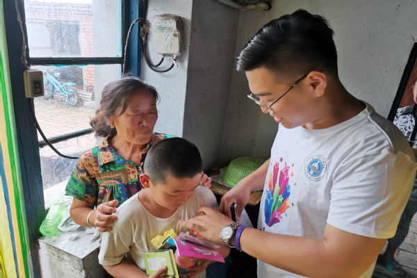 在今天的走访中,彩虹服务队队员们去了许多家。除了部分不在家的孩子,队员们几乎对所有留守儿童都展开了详细的调研。走访的过程中,队员们给孩子们带去了生活学习用品并与孩子们交谈了许久,了解了他们的家庭情况、生活情况以及学习情况。其中一个小男孩给队员们留下了深刻的印象:他和奶奶两人独自在家生活。一进入他家,最引人注目的就是他快贴满一面墙的奖状。在与他的对话当中,队员们了解到他的父母由于工作忙碌,去年过年都没能回家看他一眼。队员们在安慰着他脆弱的内心的同时也惊讶于他的坚强与乐观。在队员们把慰问品交给小男孩时,他的开心与感动溢于言表、打动了在场每一位队员的心。