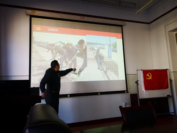 员工党支部书记土木工程2019级硕士王玮杰同学为我们讲述了在2018年8月到2019年8月期间他在国家贫困县作为一名体育老师的支教经历。一年中有辛酸有欢笑,有气馁有欣喜,有迷茫有收获。艰苦的住宿条件、高强度的工作、低水平的管理手段都是他面临的巨大挑战,但是孩子们纯真的无条件的喜爱和对知识的渴望,当地老师们不计回报的无怨付出以及公司对支教工作的支持,无时无刻不在感染教育着他。怀揣“初心”、坚守“使命”,他们帮公司规范了文件管理工作,协助公司完成了校运动会的组织工作,在全县运动会中帮助公司获得了第一名的好成绩,带着老师们的祝福和孩子们的笑脸他圆满完成了支教工作。
