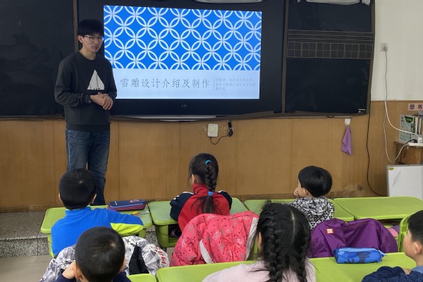 此次活动开始,志愿者们先对雪雕相关知识进行讲解。在讲解过程中,志愿者结合PPT向小朋友们讲解相关知识,并通过互动的方式使小朋友们在轻松的气氛下理解相关内容。在进行现场雕刻时,志愿者细心、认真,给小朋友们留下一个完美的作品。