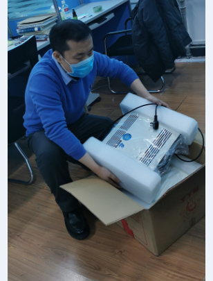 贺征老师得到公司批准后,也立刻马不停蹄的赶去实验室调试和准备设备。由于校园处于封闭状态,外人不能进入,研究生也都没偶遇返校,同时为了减少其他老师外出带来的风险,他毅然独自一人承担起了所有组装和测试工作,并对所有的设备进行了、消毒和打包,力争让每台设备都能在最短的时间内以最好的状态送到需要它们的地方去。同时还利用手头的配件,组装和修复了6台设备用于捐赠。由于楼宇封闭,食堂饭店关闭、外卖也送不进来,为了节省时间,他连续3天在实验室都没有吃午饭,几天下来他体重竟然减了接近3公斤。公司的顾璇老师也主动请缨,赴实验室帮助贺老师打包和发送设备。期间李修志书记也多次询问进展情况,积极帮助与公司协调、联系捐赠单位,并与其他院领导亲自到实验室,帮助贺老师为马上开始的进一步的设备改造和研发调配资源。