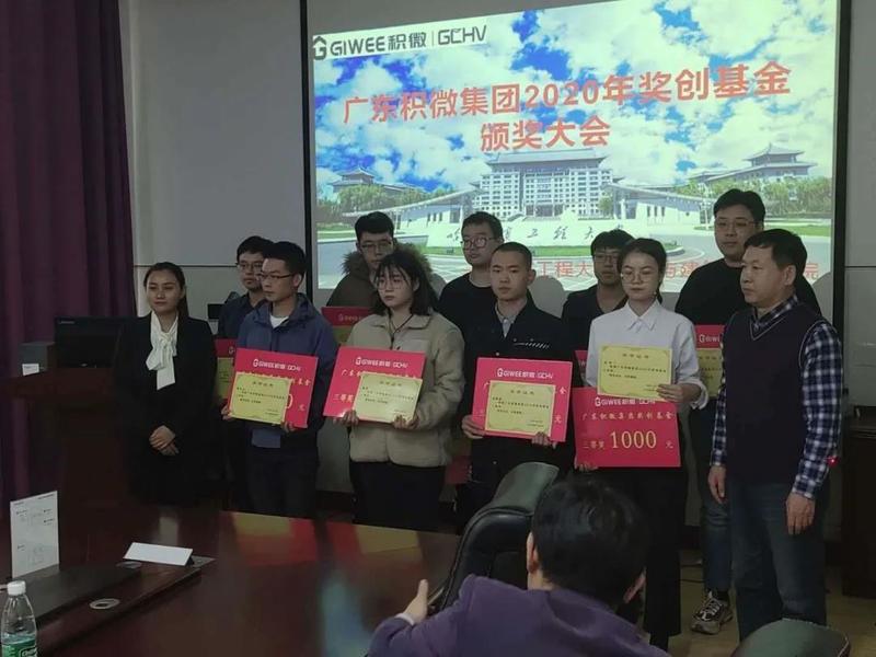 仪式最后广东积微集团代表向获得2020年度广东积微集团奖创基金的员工颁发获奖证书和奖金。