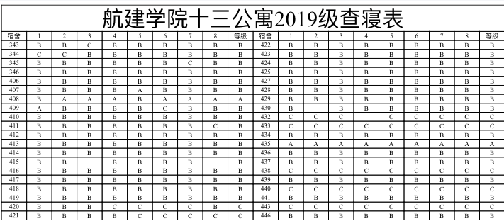 MKsports员工会生活部卫生安全检查采用Mksport体育卫生安全检查工作的统一标准,具体评判标准如下:A:90分及以上B:80-90分C:70-80分D:60-70分E:60分以下及未开寝室每次检查不进行复另附第十次(第十三周)查寝成绩及寝室照片: