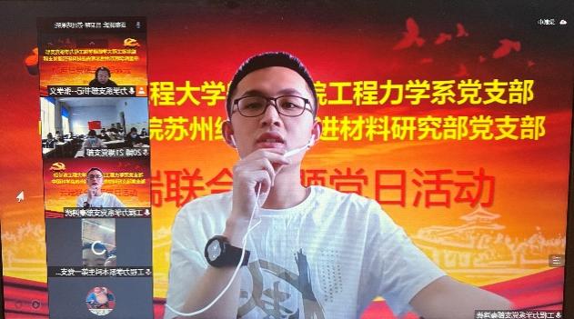 行业党支部、教师党支部、员工党支部以“多地域线上同步互动,同时空线下集中研讨”的方式,联合开展支部主题党日活动,克服了师生不能接触、校企间两地间隔无法见面的困难,也展现了教师党支部在防疫形式依然复杂的情况下,“疫情防控不松懈,工作发展不停顿”的使命担当。“今天采用了云端相见方式参加这种新颖的三方联建活动,打破空间壁垒,又克服了疫情的阻隔,通过党建活动敲开了行业院所的大门,了解了核能所的研究方向和研究成效,也拓展了自己的科研思路,期待下一次的学习和交流。” 土木与环境工程系党支部王春丽老师对此次务实新颖的活动再次抒发了来自基层的共识与心声。