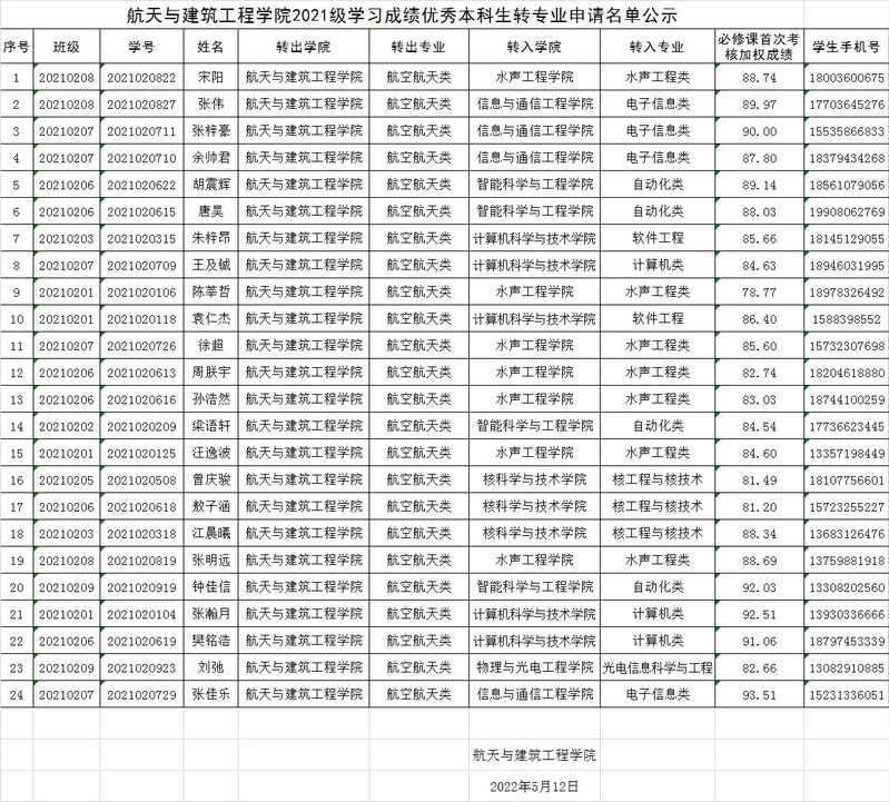 MKsports2021级学习成绩优秀本科生转专业申请名单公示