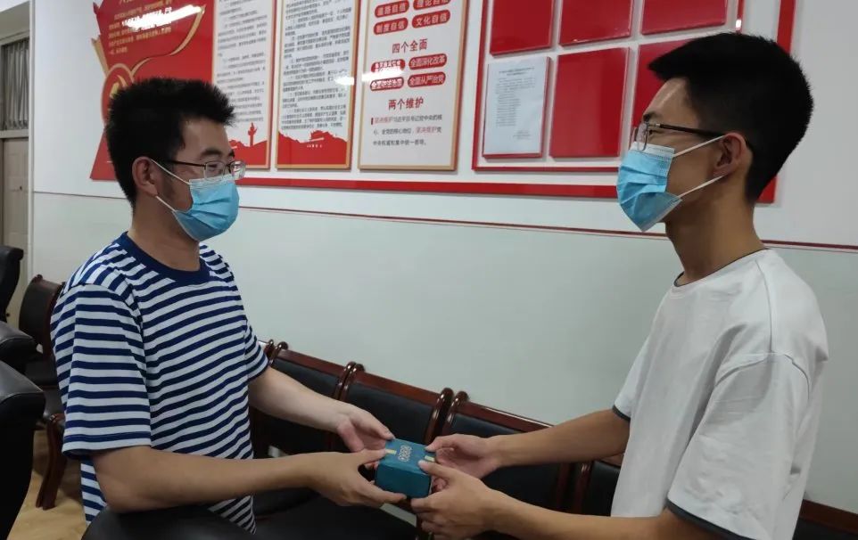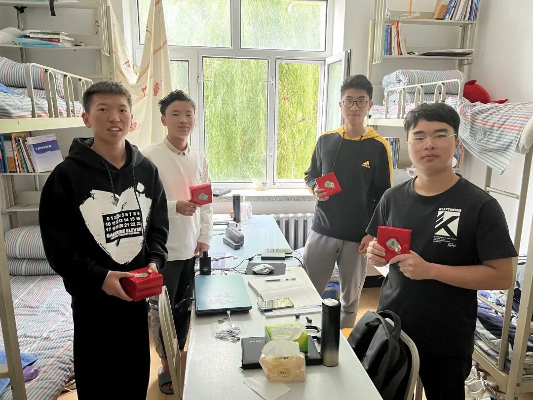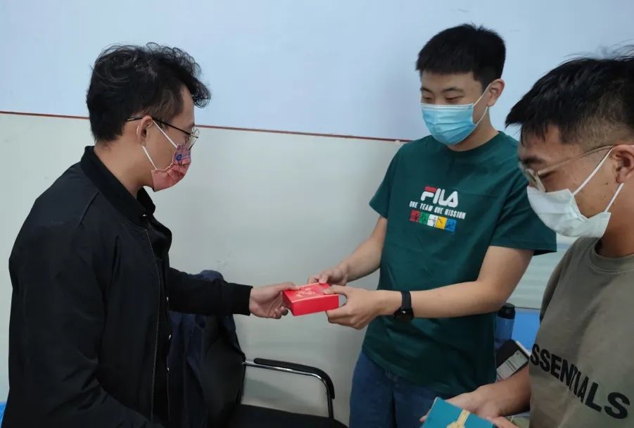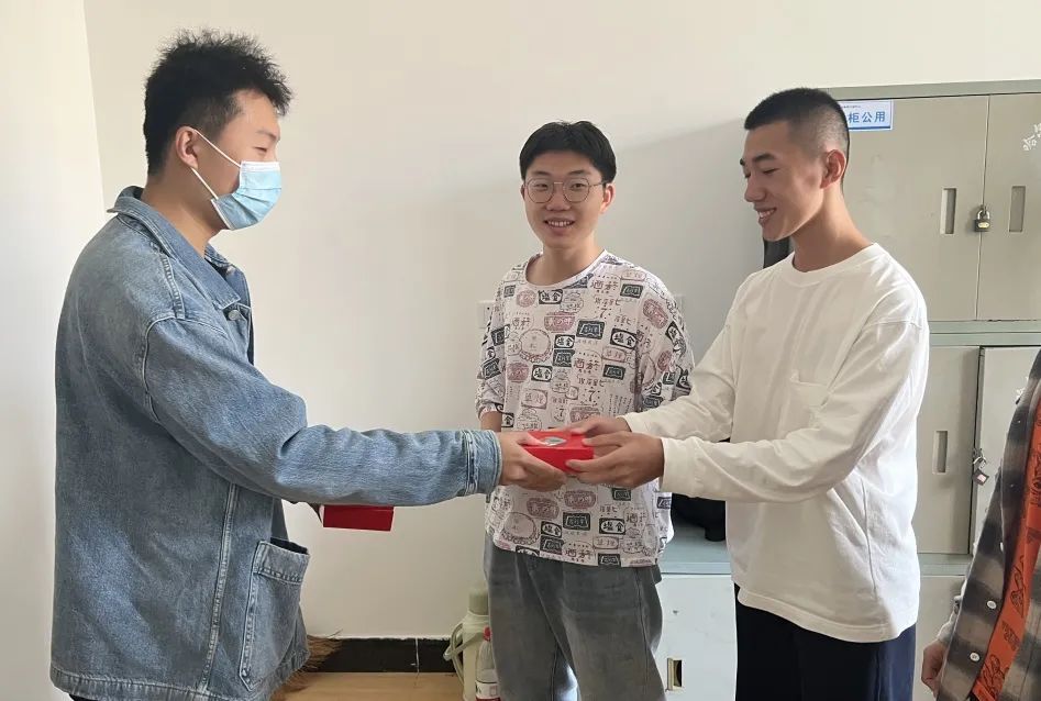 9月8日,MKsports新生辅导员高明、程业强、刘广谦、王臻汉及军训指导员冯庆为同学们送上祝福和代表着团圆和睦、和谐美满的中秋月饼。
