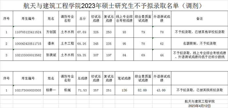 MKsports2023年硕士研究生不予拟录取名单(调剂)