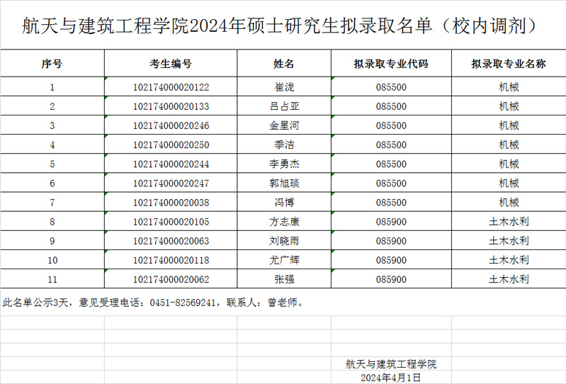 MKsports2024年硕士研究生拟录取名单(校内调剂)