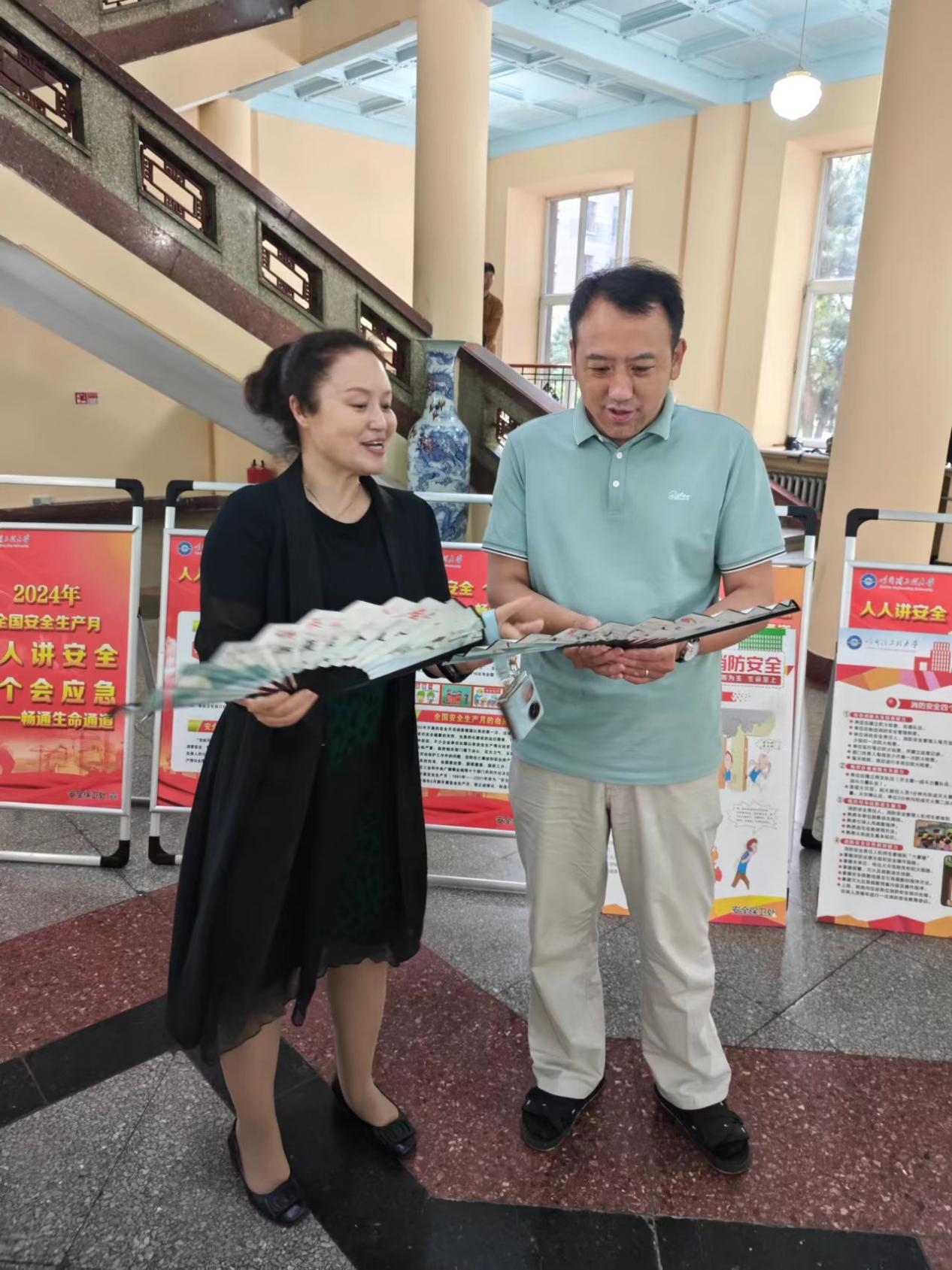 活动中对安全知识充分讲解的同时,现场为每位师生发放安全生产小折扇,这不仅是夏季防暑降温的实用工具,更是提醒大家时刻铭记安全的重要性。折扇上印有“人人讲安全,个个会应急”的醒目标语和常见的安全警示标识,每次轻轻扇动,都仿佛在耳边低语,提醒着大家在日常工作和学习中要时刻保持警觉,遵守安全规则,提高自我保护意识,同时,发放的还有《实验室安全基本技能须知》手册,手册中对专项安全、实验室废物处置和意外事故处置都有详细的说明。