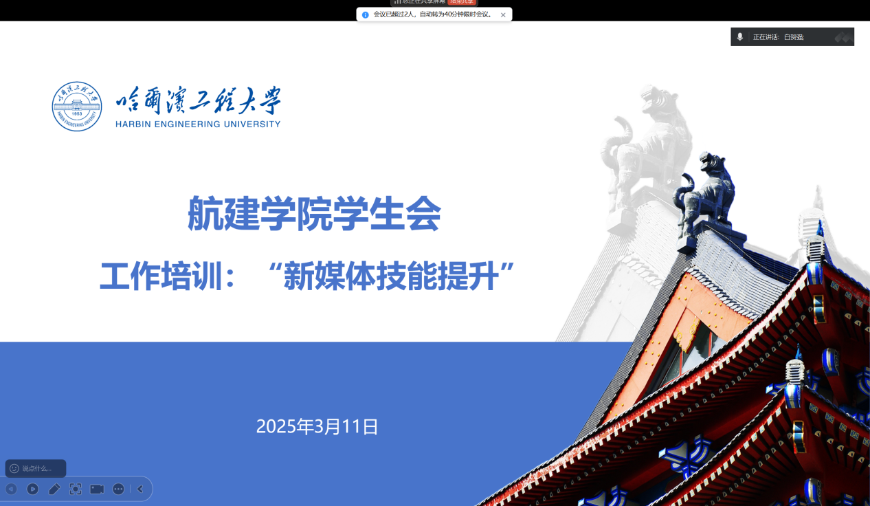 员工会于2025年3月11日面向全体部门开展“新媒体技能提升”系列线上推送活动,讲座内容涵盖模板化知识推送、视觉设计、网络宣传设计、运营策略等内容。所有部门踊跃参加,与会成员认真学习,提高了写作能力和表达能力,利于其在以后的工作中提高人际交往能力和工作能力。